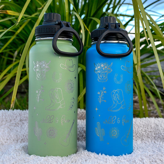 1L Owala Style Water Bottle-Floral Whale-Laser Engraved-Full Wrap