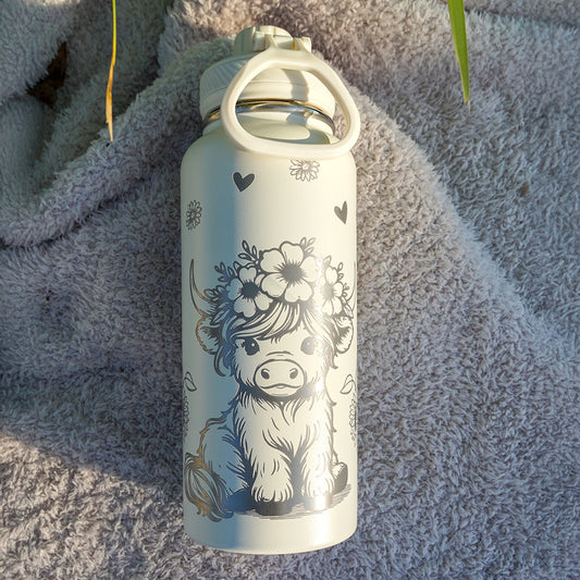 1L Insulated Water Bottle Full Wrap - HIGHLAND COW