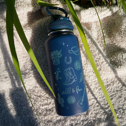 1L Insulated Water Bottle - Full Wrap - WILD & FREE