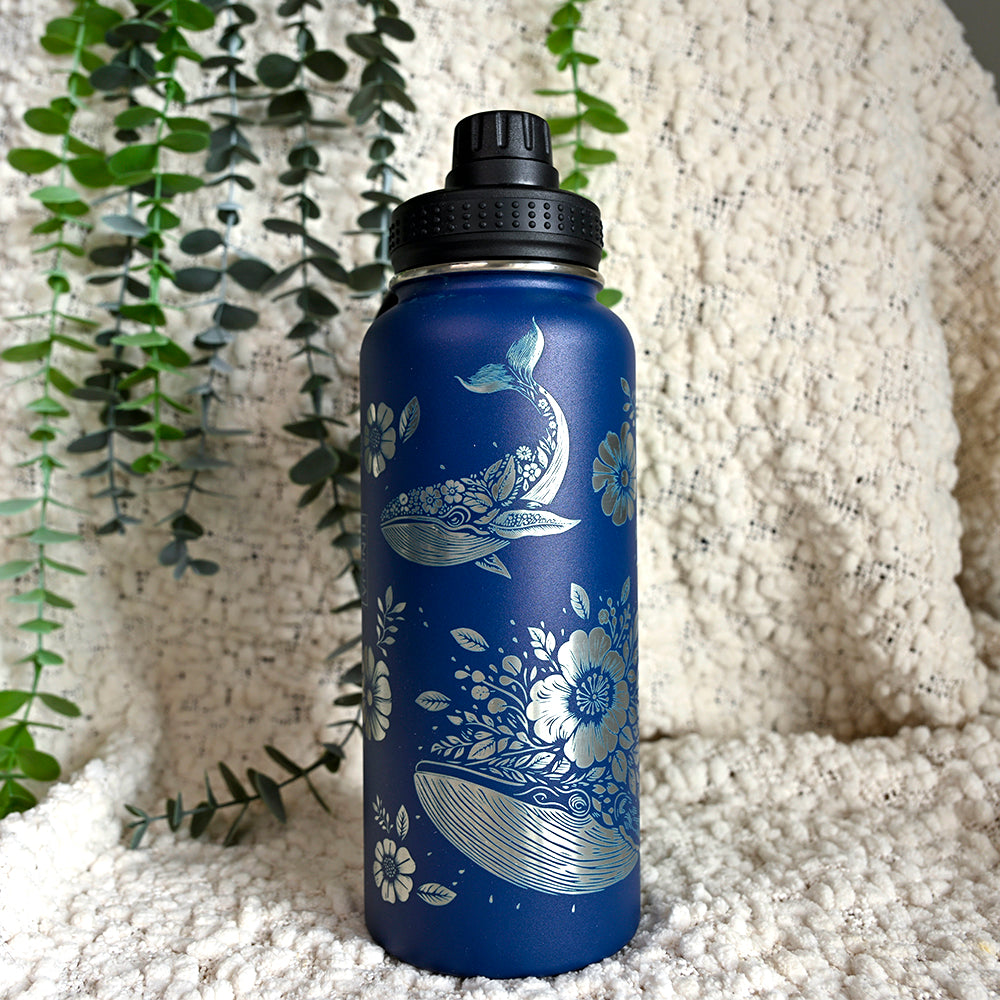 1L Insulated Water Bottle full wrap - FLORAL WHALE
